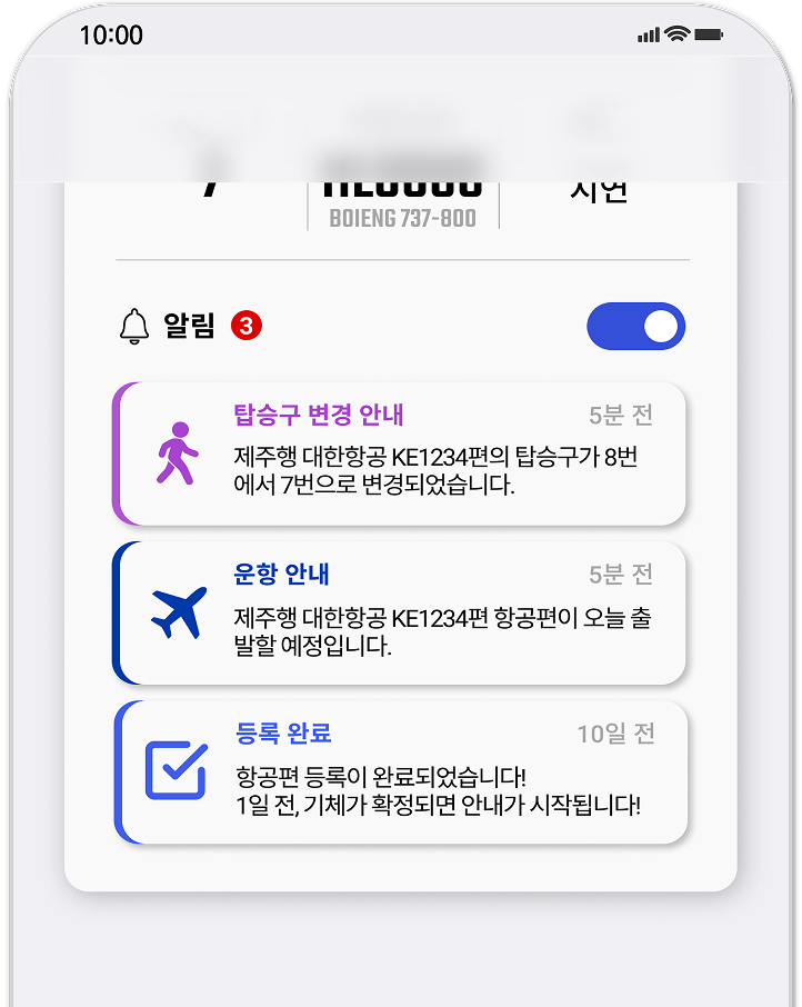 출발/도착, 지연, 결항, 게이트 변경 등 내 항공편의 모든 운항 상황을
